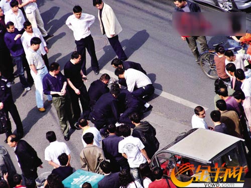 昨天下午4時(shí)左右,在北京右安門醫(yī)院的急診監(jiān)護(hù)室里,喬文輝(音)女士下巴、左手中指和手腕均纏著紗布,向警方訴說(shuō)著兩個(gè)小時(shí)前自己的驚險(xiǎn)經(jīng)歷。