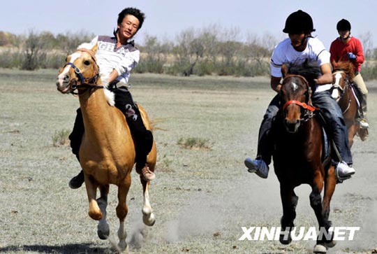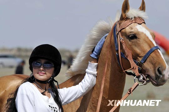 5月9日,“汗血寶馬”龍頭在新疆五家渠市精彩亮相。2003年從中亞引進(jìn)的龍頭是匹6歲公馬,身姿矯健優(yōu)美,毛色金黃,四蹄雪白,是新疆唯一的一匹“汗血寶馬”。“汗血寶馬”本名阿哈爾捷金馬,產(chǎn)于土庫(kù)曼斯坦科佩特山脈和卡拉庫(kù)姆沙漠間的阿哈爾綠洲,是世界上最古老的馬種之一,目前全世界共存“汗血寶馬”近3000匹,其中約2000匹在土庫(kù)曼斯坦。趙戈 攝