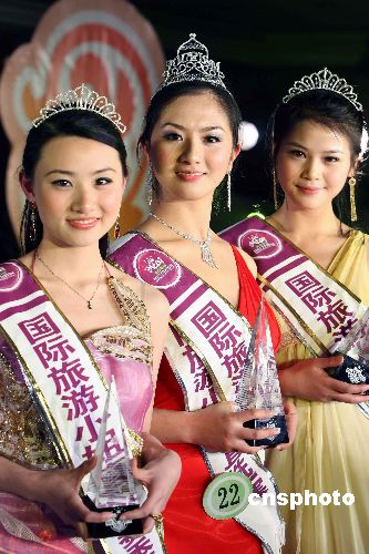 啟動儀式后進(jìn)行了2008國際旅游小姐大賽的直選賽,童鶴(中)、邱璐燔(右)和張靖暄分別獲得冠亞季軍,她們將與來其他分賽區(qū)的三甲選手參加于今年3月中旬在西塘舉行的中國總決賽。