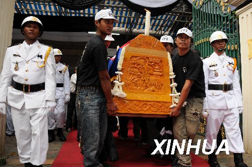 11月15日,在柬埔寨首都金邊市,工作人員搬運(yùn)柬埔寨國(guó)家警察總監(jiān)霍倫迪的靈柩。當(dāng)天,霍倫迪的遺體被運(yùn)往其故鄉(xiāng)柴楨省。本月9日,霍倫迪乘坐的直升機(jī)在柴楨省墜毀,機(jī)上4人全部遇難。新華社記者夏林?jǐn)z