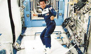日本宇航員若田光一在國際空間站上由日本建造的“希望”號(hào)實(shí)驗(yàn)艙內(nèi)試驗(yàn)了毯上飛行以及零重力條件下滴眼藥水等。據(jù)報(bào)道,日本宇宙航空研究開發(fā)機(jī)構(gòu)已將若田5月15日的“飛毯”表演視頻公之于眾。畫面顯示,現(xiàn)年45歲的若田站在一塊白色布單上,就像單板滑雪一樣平穩(wěn)地滑過國際空間站上的一個(gè)實(shí)驗(yàn)艙。若田通過麥克風(fēng)說:“我在這個(gè)‘魔毯’飛行中使用膠帶固定雙腳,以便能站在上面!