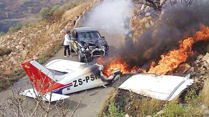 6月7日下午,南非約翰內(nèi)斯堡當(dāng)?shù)?0歲女子莫尼卡·布拉甘卡駕駛一輛福特小貨車在克魯吉斯多普機場附近的一條公路上行駛,汽車上還坐著另外一名叫做安娜·瓦林娜的女子和一名名叫托尼的男子。當(dāng)莫尼卡駕車行駛時,她突然看到天空中有一架輕型飛機,正朝她的小貨車筆直地俯沖下來!由于汽車行駛的公路非常狹窄,莫尼卡根本來不及避讓這架從天而降的輕型飛機!