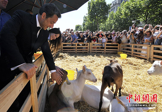 5月24日,法國(guó)巴黎,法國(guó)總統(tǒng)薩科齊和妻子卡拉·布呂尼參觀(guān)巴黎“自然首都”展。