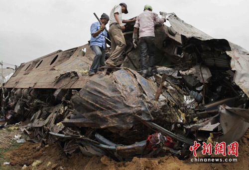 印度東部西孟加拉邦火車(chē)遇襲脫軌事故已經(jīng)發(fā)生30多個(gè)小時(shí),29日救援人員繼續(xù)在現(xiàn)場(chǎng)進(jìn)行搜救工作。西孟加拉邦警察局長(zhǎng)表示,截至目前已經(jīng)發(fā)現(xiàn)110具尸體。同時(shí)仍有多達(dá)50人下落不明。圖為救援現(xiàn)場(chǎng)。