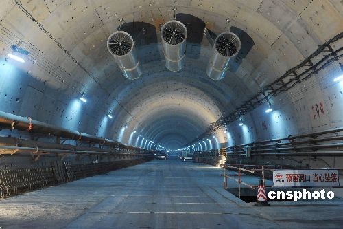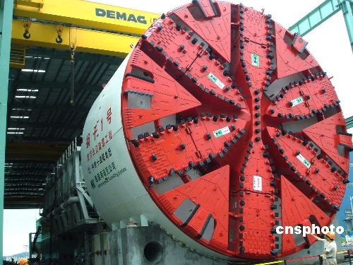 五月二十日上午,隨著“揚(yáng)子二號(hào)”盾構(gòu)機(jī)的巨型刀盤轟鳴呼嘯著沖破最后一環(huán)冷凍層,中國(guó)鐵建十四局集團(tuán)承建的國(guó)家“八六三”計(jì)劃科技示范工程、代表當(dāng)今中國(guó)水下隧道建設(shè)最高水準(zhǔn)之一的南京長(zhǎng)江隧道左線順利貫通。南京長(zhǎng)江隧道位于南京長(zhǎng)江大橋和長(zhǎng)江三橋之間,總長(zhǎng)達(dá)到五千八百五十三米,設(shè)計(jì)為雙向六車道,行車時(shí)速八十公里,其中左右線盾構(gòu)隧道總長(zhǎng)超過六千米,工程總投資近四十億元人民幣。它是迄今為止中國(guó)長(zhǎng)江流域上工程技術(shù)難度最大、地質(zhì)條件最復(fù)雜、技術(shù)性難題和挑戰(zhàn)最多的世界級(jí)越江隧道工程。南京長(zhǎng)江隧道施工采用了兩臺(tái)目前世界上最先進(jìn)的泥水平衡盾構(gòu)機(jī)掘進(jìn),刀盤直徑為14.93米,相當(dāng)于5層樓高,超過了目前世界上已經(jīng)建成的最大直徑隧道——荷蘭的格林哈特隧道。中新社發(fā) 李佩山 攝
