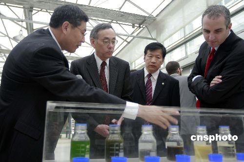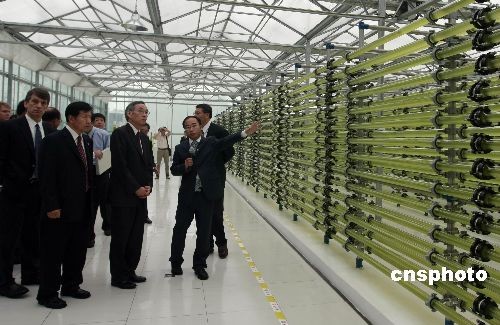 7月17日,美國能源部長朱棣文來到河北廊坊,參觀了民營清潔能源企業(yè)——新奧集團(tuán)的煤基能源生產(chǎn)“零排放”技術(shù)系統(tǒng)試驗(yàn)中心和光伏太陽能電池生產(chǎn)線,對(duì)新奧集團(tuán)的二氧化碳減排技術(shù)十分關(guān)心。新奧集團(tuán)創(chuàng)建于1989年,致力于清潔能源技術(shù)的開發(fā)、應(yīng)用與服務(wù)。中新社發(fā) 盛佳鵬 攝