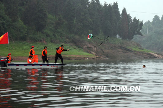 7月10日上午,為檢驗集訓(xùn)效果,女子特警隊進行了抗洪搶險救災(zāi)實兵演練。演練主要對沖鋒舟水上編隊行進、水上搜救、轉(zhuǎn)移輸送群眾等內(nèi)容進行了演示。演練中,特警隊員們行動迅速、精神飽滿,發(fā)揚了特別能吃苦、特別能戰(zhàn)斗、特別能協(xié)同的精神,把練指揮、練體能、練協(xié)同貫穿于演練全過程,切實提高了抗洪搶險救災(zāi)應(yīng)急處置能力,為完成抗洪搶險救災(zāi)任務(wù)打牢了堅實的基礎(chǔ)。為提高部隊在各種復(fù)雜條件下的抗洪搶險救災(zāi)能力,扎實做好抗洪搶險救災(zāi)準(zhǔn)備工作,武警四川省總隊女子特警隊在距成都市區(qū)30公里外的龍泉湖舉行了為這次期一周的船艇駕駛集訓(xùn),錘煉了部隊抗洪搶險救災(zāi)能力。 于傳濤 攝影