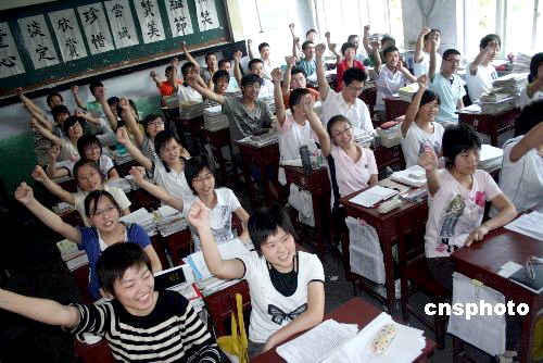 6月3日,在高三的同學(xué)們?cè)谝黄鹱觥靶睦泶驓庥螒颉,增?qiáng)自信心。隨著今年高考的臨近,為緩解考生壓力,山東博興縣第一中學(xué)通過(guò)開(kāi)展心理輔導(dǎo)、組織做減壓游戲、開(kāi)設(shè)減壓課等方式,減輕考生應(yīng)考?jí)毫,釋放考生緊張心情,幫助他們?cè)鰪?qiáng)自信心,以輕松樂(lè)觀的心態(tài)迎接高考。中新社發(fā) 陳彬 攝