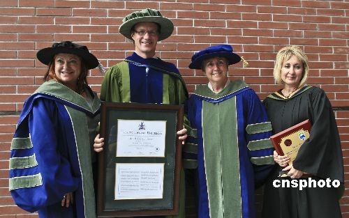 六月二十六日,中國最知名的加拿大人大山先生在天津出席“天津理工大學(xué)和湯姆遜大學(xué)學(xué)士畢業(yè)典禮”,并榮獲由湯姆遜大學(xué)頒發(fā)的榮譽博士學(xué)位。這一榮譽學(xué)位肯定了大山先生通過國際教育形式為建立全球文化與經(jīng)濟(jì)的接軌所作出的貢獻(xiàn)。湯姆遜大學(xué)(TRU)與天津理工大學(xué)合作的工商管理學(xué)士學(xué)位項目始于2002年。到目前為止,已有558名中國學(xué)生獲得了中加這兩所大學(xué)同時頒發(fā)的工商管理學(xué)士學(xué)位,這兩所大學(xué)在商科教育領(lǐng)域的成功合作,已經(jīng)成為中加合作辦學(xué)的典范。中新社發(fā) 王磊 攝