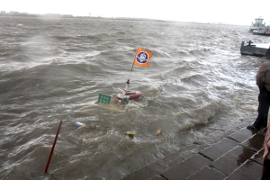 14時許,在道外區(qū)北五道街區(qū)段松花江邊的一艘小型客船被狂風(fēng)掀起的浪花撞得劇烈搖晃,灌進(jìn)許多水后沉入水中,僅露出艙頂一面小旗,所幸當(dāng)時船上沒有人。