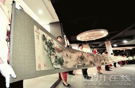 經過37位設計師1年半時間的研發(fā),18位專業(yè)高級繡師歷時180多天、巧奪天工的繡制,長22米的《清明上河圖》十字繡,昨(30日)晚在成都首次公開亮相。這幅特殊的十字繡總共使用了116505米繡線,共計2032611針,重達20600克,是目前世界上最長的十字繡藝術品。18位技師從2008年7月20日起開始繡制,至2009年1月20日完工,共繡制人物814人,動物83匹,船只29艘,房屋樓宇30多棟,車13輛,轎8頂,橋17座,樹木180棵,人物往來衣著不同,神情各異,栩栩如生。作品將在第二屆非物質文化遺產節(jié)上正式展出。(譚曦 攝)