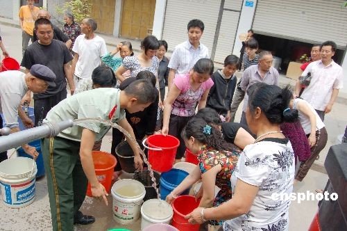 6月7日,3車生活用水運(yùn)送到四川南部縣大王鎮(zhèn),以解決2000多人的用水困難。今年5月以來,降雨強(qiáng)度小,四川南部縣降雨總量比往年同期偏少,部分河段水位下降,夏旱入侵南部,72個鄉(xiāng)鎮(zhèn)的部分稻田出現(xiàn)干涸開裂現(xiàn)象。目前,南部縣正采取措施,減少夏旱對農(nóng)業(yè)造成的損害。中新社發(fā) 張櫪 攝