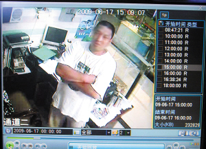 發(fā)現(xiàn)了小偷蹤跡的工作人員急忙報警,為了保存證據(jù),技術人員還在民警的要求下將錄像進行了下載,并以文件的形式保存在了電腦中。從監(jiān)控錄像中可以看出,這名男子的年齡在40歲上下,身體較胖。當時他身穿一件寬大的T恤衫和一條卡其色的短褲。剛開始時,男子是以購買攝像頭的名義跟銷售人員進行咨詢,而且還查看了一款售貨員推薦的機型。