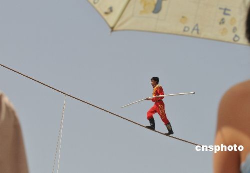 “達(dá)瓦孜”藝術(shù)是新疆文化的瑰寶之一,該藝術(shù)節(jié)將充分展現(xiàn)新疆體育文化的魅力,使新疆文化、體育、旅游有機(jī)結(jié)合起來,在弘揚民族傳統(tǒng)文化同時豐富旅游文化內(nèi)涵。 中新社發(fā) 確·胡熱 攝