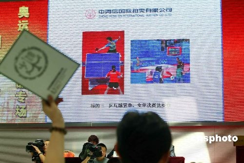 6月30日,北京奧運(yùn)會(huì)專用物資拍賣會(huì)迎來“謝幕秀”,北京奧組委處置奧運(yùn)物資的最后一拍當(dāng)日舉行,乒乓球決賽用祥云比賽臺(tái)、主席臺(tái)座椅、茶幾等130多件奧運(yùn)物資屆時(shí)公開拍賣。 此次拍賣的奧運(yùn)特殊物品主要包括主席臺(tái)茶幾及座椅、國(guó)際貴賓廳專用沙發(fā)、鳥巢私人餐臺(tái)、乒乓球決賽用祥云比賽臺(tái)等,其中包括30余件奧運(yùn)會(huì)前專為國(guó)家領(lǐng)導(dǎo)人及各國(guó)元首設(shè)計(jì)的絕版沙發(fā)及座椅,每個(gè)版本僅此一件。中新社發(fā) 富田 攝