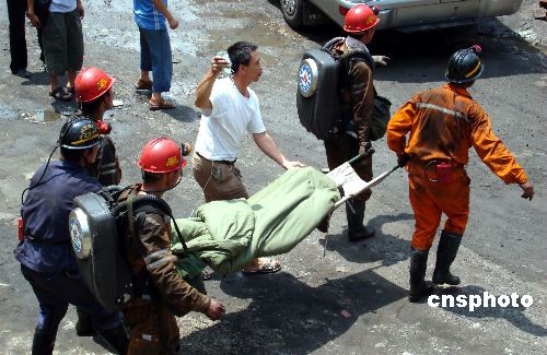 貴州晴隆新橋煤礦“6.17”透水事故在全體搶險(xiǎn)救援人員的艱苦努力、日夜奮戰(zhàn)下,歷經(jīng)25天、604小時(shí)的搶險(xiǎn)救援,取得突破性進(jìn)展,2009年7月12日12時(shí),在礦井上山巷與平巷交叉處成功營(yíng)救出王圈杰、王礦偉、趙衛(wèi)星3名被困礦工,他們均為河南汝陽(yáng)人,營(yíng)救出井時(shí),意識(shí)較清醒,三人創(chuàng)造了604小時(shí)的生命奇跡,在場(chǎng)的全體搶險(xiǎn)救援人員都為他們頑強(qiáng)的生命所感動(dòng)。目前,救援指揮部醫(yī)護(hù)人員正在對(duì)他們進(jìn)行身體檢查,并采取相應(yīng)的醫(yī)療措施對(duì)他們進(jìn)行醫(yī)療救護(hù),據(jù)觀察,生命體征基本平穩(wěn)。同時(shí),搶險(xiǎn)救援人員正在井下緊急搜救其他被困礦工。中新社發(fā) 彭年 攝