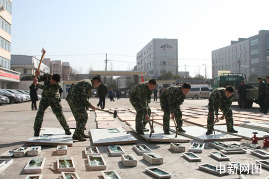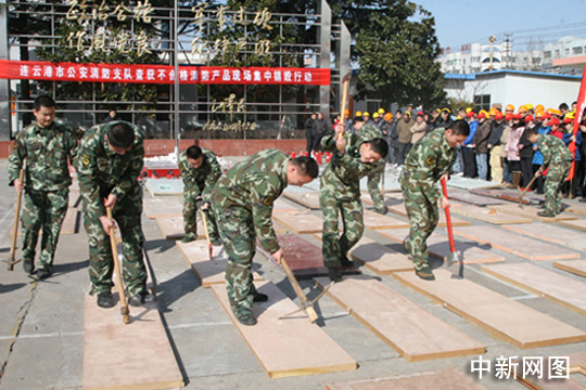 中新網(wǎng)連云港3月10日電 (蘇欣 吳茂新 朱曉穎)10日上午,在連云港市消防支隊(duì)營區(qū)院內(nèi),由消防部門聯(lián)合工商、質(zhì)監(jiān)共同查獲的不合格滅火器、消火栓、消防應(yīng)急照明燈等520余件消防假冒偽劣產(chǎn)品被集中銷毀。