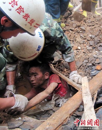 不一會(huì)兒,第3組人員發(fā)現(xiàn)在廢墟右側(cè)靠里面的地方有微小的聲音,“又找到一名被困婦女”,在場人員又一次緊張起來。得知這一情況后,陸向前立即下令,3組人員同時(shí)開展救援,爭取在最短的時(shí)間內(nèi)搶救出被困人員。