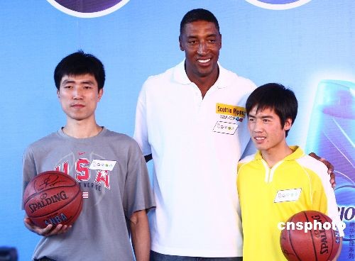 6月3日,NBA前公牛隊(duì)傳奇巨星、六次NBA總冠軍獲得者斯科特·皮蓬來到北京,為NBA中國(guó)與寶潔發(fā)起的“籃球星級(jí)體驗(yàn)賽進(jìn)社區(qū)活動(dòng)”啟動(dòng)助陣;顒(dòng)現(xiàn)場(chǎng),皮蓬更是按耐不住與中國(guó)籃球愛好者們一起切磋球藝。在接下來的兩個(gè)月中,一系列富有挑戰(zhàn)性、趣味性的籃球體驗(yàn)營(yíng)與籃球挑戰(zhàn)賽將陸續(xù)在北京,上海,廣州和深圳等十大城市社區(qū)打響。中新社發(fā) 李學(xué)仕 攝