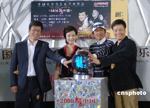 5月18日傍晚,將于6月30日上演的2009魅力中國(guó)北京鳥巢夏季音樂(lè)會(huì),在北京召開第二次新聞發(fā)布會(huì)暨開票儀式,宣布音樂(lè)會(huì)正式進(jìn)入倒計(jì)時(shí)。陳道明、閻維文、白巖松三位“好男人”作為宋祖英的好友現(xiàn)場(chǎng)助陣。據(jù)透露,這場(chǎng)音樂(lè)會(huì)將是鳥巢第一次使用單面立體舞臺(tái),將配置最頂尖的燈光音響設(shè)備,而宋祖英在音樂(lè)會(huì)上不僅要以充滿視覺(jué)沖擊的六套華服實(shí)現(xiàn)形象大突破,更有望與周杰倫或者多明戈激情共舞。中新社發(fā) 李學(xué)仕 攝