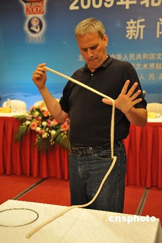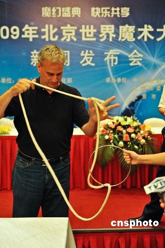 7月7日,世界著名魔術(shù)師大衛(wèi)·威廉姆森在舉行的新聞發(fā)布會上表演近景魔術(shù),其精彩的魔術(shù)表演令在場媒體瞠目結(jié)舌。2009年北京世界魔術(shù)大會將于7月26日在北京國家會議中心拉開序幕,屆時將有來自世界66個國家和地區(qū)的2300多名魔術(shù)師和魔術(shù)愛好者參加大會,為中國觀眾獻(xiàn)上世界頂尖的魔術(shù)盛典。中新社發(fā) 賈朔 攝