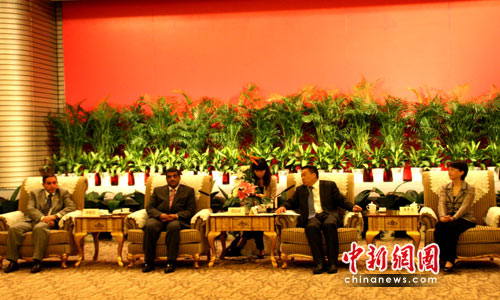 6月25日晚,中共中央對外聯(lián)絡(luò)部副部長李進(jìn)軍(右二)、中共揚(yáng)州市委書記王燕文(右一)在揚(yáng)州迎賓館會見參加26日由中共中央對外聯(lián)絡(luò)部與中共揚(yáng)州市委、揚(yáng)州市人民政府共同主辦的中國與海灣阿拉伯國家石化產(chǎn)業(yè)合作論壇的海合會六成員國阿拉伯聯(lián)合酋長國、阿曼、巴林、卡塔爾、科威特和沙特阿拉伯的駐華大使或臨時(shí)代辦,以及全球最大的石油公司沙特阿美公司、沙特基礎(chǔ)工業(yè)公司、沙特扎米爾集團(tuán)公司、阿聯(lián)酋國家石油公司、阿聯(lián)酋博祿石化公司、卡塔爾天然氣公司等多家海灣阿拉伯國家石化企業(yè)高層領(lǐng)導(dǎo)。圖左二為阿曼蘇丹國駐華大使阿卜杜拉·薩阿迪,左一為阿聯(lián)酋駐華大使歐麥爾·白伊塔爾。