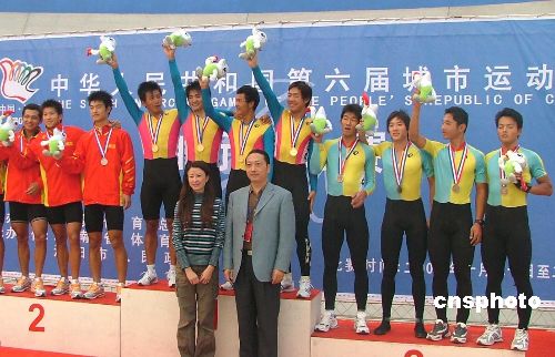 十月二十三日,第六屆城市運動會自行車場地賽在河南洛陽新區(qū)體育中心開賽,昆明隊獲得男子四公里團體追逐賽冠軍。中新社發(fā) 史寶銀 攝