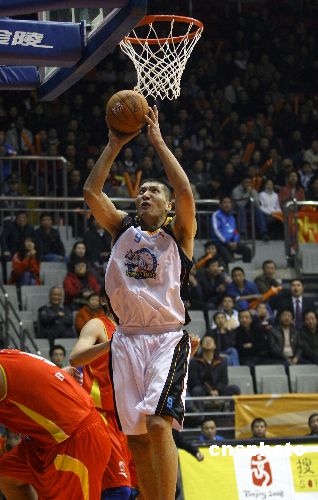 十月二十八日,新疆廣匯隊(duì)在烏魯木齊紅山體育館,主場(chǎng)迎戰(zhàn)陜西東盛隊(duì),最終以一百一十五比一百零一戰(zhàn)勝對(duì)手,取得新賽季的開(kāi)門(mén)紅。圖為,剛剛加盟新疆廣匯隊(duì)不久的中鋒巴特爾,在比賽中突破對(duì)方防線上籃。中新社發(fā) 劉新 攝
