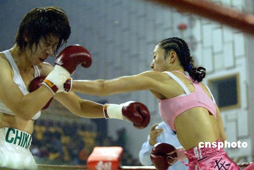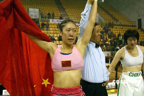 11月9日,由國家體育總局拳跆運動管理中心,PABA泛亞洲拳擊協(xié)會,CPBO中國職業(yè)拳擊機構(gòu)主辦的WBA PABA女子次輕量級拳王爭霸賽在遼寧丹東舉行。丹東籍女拳手高麗君對決日本女拳手水谷知佳,以點數(shù)獲勝,奪得PABA女子次輕量級金腰帶,成為亞洲次輕量級女拳王。中新社發(fā) 陳浩浩 攝