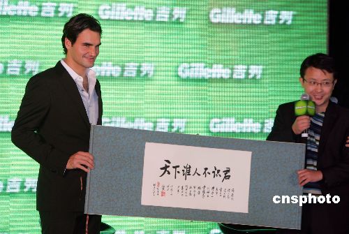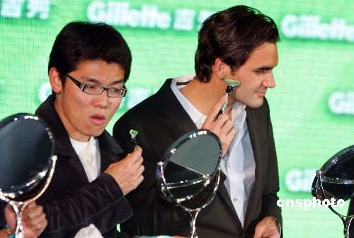 11月9日,“網(wǎng)壇天王”費(fèi)德勒在上海出席一家品牌主辦的球迷見面活動,并在現(xiàn)場主持為數(shù)一千人的剃須成人禮儀式。中新社發(fā) 湯彥俊 攝