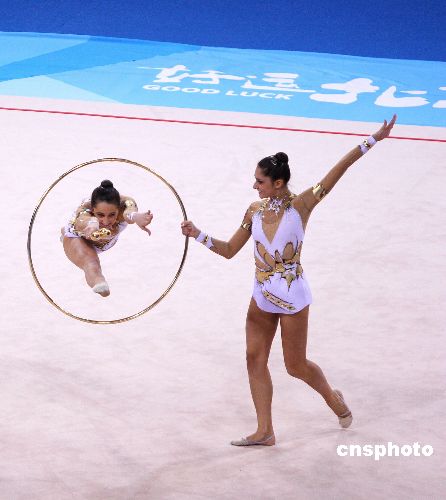 12月6日,“好運(yùn)北京”藝術(shù)體操國際邀請賽繼續(xù)在北京工業(yè)大學(xué)進(jìn)行。繼昨日團(tuán)體繩操資格賽之后,當(dāng)日團(tuán)體進(jìn)行的是圈和棒混合資格賽。中新社發(fā) 富田 攝
