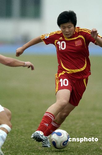 2007年12月19日下午,中國女足在廣州黃埔體育中心體育場與新西蘭女足熱身賽中以4比0大勝。中新社發(fā) 吳峻 攝