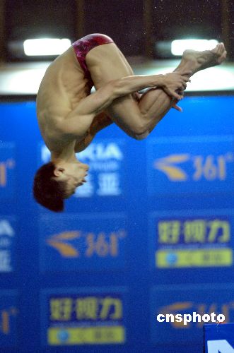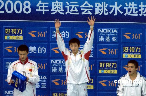 1月10日,2008年奧運會跳水選拔賽(濟南站)全部結(jié)束。在最后一天的比賽中,北京選手林躍獲得男子10米跳臺冠軍。奧運冠軍胡佳僅獲得第4名。中新社發(fā) 張侃 攝