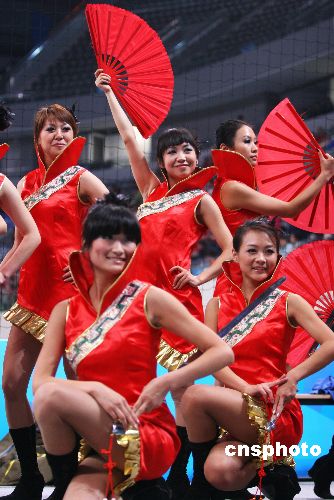 圖:啦啦隊(duì)為“好運(yùn)北京”手球賽添色
