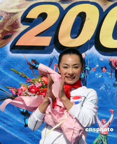 1月20日上午,中國體操世界冠軍劉璇在廣東惠州市帶領(lǐng)上萬市民歡呼齊跳“愛中國,中國隊加油!”集體舞。由惠州鵝城攝影學會主辦的“2008舞動大拇指,最愛中國年”攝影大賽同時開始,劉璇親自按動相機快門,主持攝影大賽開鏡儀式,并為惠州人民題寫新年祝詞。中新社發(fā) 宋秀杰 攝