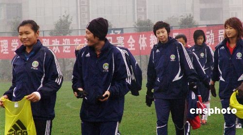 2月17日上午,中國女足在主教練伊麗莎白帶領(lǐng)下,在重慶文理學(xué)院足球訓(xùn)練場冒著春雨進(jìn)行“靈敏度”訓(xùn)練及5打5的分組對抗訓(xùn)練。中新社發(fā) 陳仕川 攝