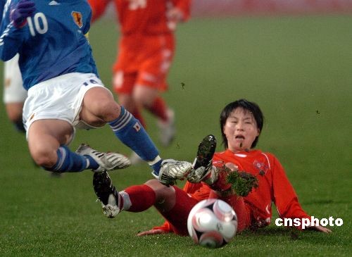 2008年2月18日,東亞女子足球錦標(biāo)賽在重慶永川體育中心體育場開戰(zhàn)。日本隊以3比2勝朝鮮隊,爆出本賽事一冷門。中新社發(fā) 吳峻 攝