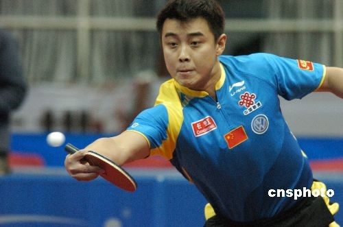 二月二十六日,第四十九屆世界乒乓球錦標(biāo)賽男子團(tuán)體賽在廣州進(jìn)行第三輪角逐,中國(guó)隊(duì)的王勵(lì)勤、馬琳、王皓組成豪華陣容,以三比零完勝對(duì)手克羅地亞隊(duì),取得小組賽三連勝。中新社發(fā) 柯小軍 攝