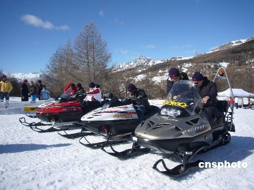圖:各國(guó)F1摩托艇高手參加“冰上F1”比賽