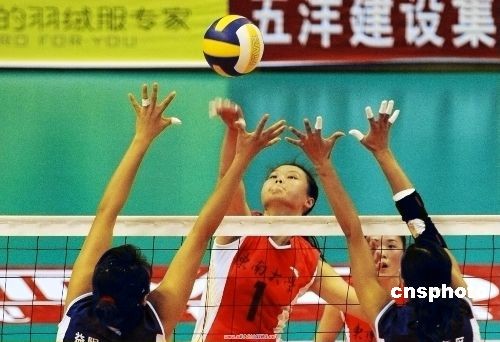 3月12日,2008安踏全國女排錦標(biāo)賽冠軍爭奪戰(zhàn)在江蘇太倉拉開戰(zhàn)幕。東道主江蘇女排以3比0(25-19、25-14、25-23)擊敗八一女排,獲得女排錦標(biāo)賽冠軍。中新社發(fā) 姜振華 攝