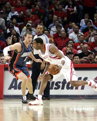 3月14日,休斯頓火箭隊在主場迎戰(zhàn)夏洛特山貓,盡管表現(xiàn)一般,但還是戰(zhàn)勝了弱旅山貓取得21連勝,創(chuàng)造了NBA歷史上的第二長連勝紀錄。麥迪30分7個籃板,表現(xiàn)搶眼。中新社發(fā) 楊晉生 攝