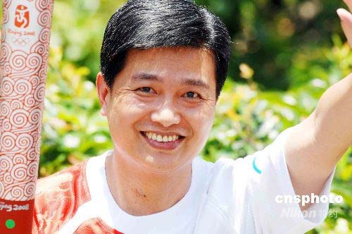 圖:奧運(yùn)火炬手韓星元在深圳接力傳遞