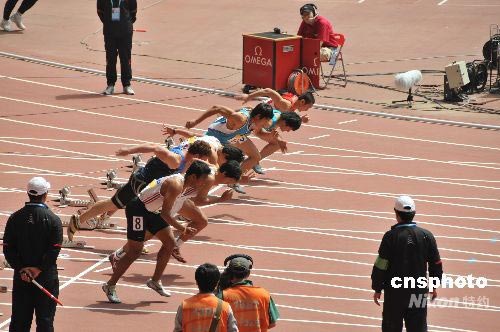 “好運(yùn)北京”2008年全國田徑錦標(biāo)賽暨中國田徑公開賽,自5月22日至25日在國家體育場“鳥巢”舉行,22日上午九點(diǎn)比賽開始前,全體觀眾、運(yùn)動員、工作人員起立,向四川地震遇難同胞默哀;今天上午進(jìn)行的項目有:女子七項全能100米欄、男子F/55/56/57/58標(biāo)槍決賽、女子100米欄預(yù)賽 、男子跳遠(yuǎn)及格賽A/B、 男子1500米預(yù)賽 、女子七項全能跳高A/B 、男子鉛球及格賽 A/B、 女子1500米預(yù)賽、 男子400米預(yù)賽、女子400米預(yù)賽等。中新社發(fā) 馮軍(北京) 攝