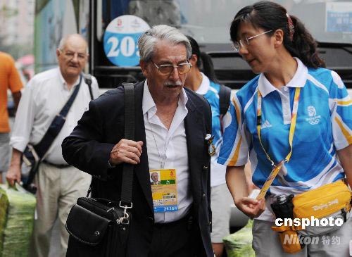 七月二十七日,青島奧運(yùn)村舉行開村升旗儀式,各國帆船運(yùn)動代表團(tuán)的運(yùn)動員紛紛入住青島奧運(yùn)村,進(jìn)入奧帆賽最后實(shí)戰(zhàn)準(zhǔn)備階段。圖為中國志愿者在與外國帆船教練進(jìn)行交流提供幫助。中新社發(fā) 曲連遵 攝