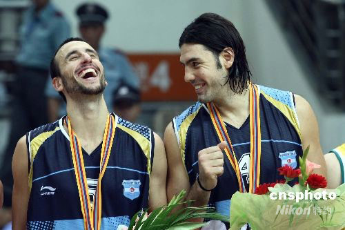 8月1日晚,國際籃聯(lián)2008鉆石杯男籃比賽的決賽在阿根廷隊(duì)與澳大利亞隊(duì)之間打響,最終阿根廷隊(duì)在第三節(jié)一度落后19分的情況下,上演大逆轉(zhuǎn),最終以95:91戰(zhàn)勝對手,奪得冠軍。中新社發(fā) 盛佳鵬 攝