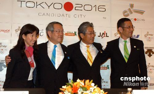 8月4日,東京2016年奧運(yùn)會申辦委員會在北京舉辦東京申辦2016年奧運(yùn)會新聞發(fā)布會。圖為日本奧林匹克委員會主席、東京2016年奧運(yùn)會申辦委員會副主席竹田恒和(右三)、東京2016年奧運(yùn)會申辦委員會主席兼首席執(zhí)行官河野一朗(右二)、東京都政府申辦推廣部執(zhí)行總監(jiān)中村年長(右一)、東京2016年奧運(yùn)會申辦委員會國際宣傳部總監(jiān)仲川美穗子(左一)在會上合影。中新社發(fā) 鄒憲 攝