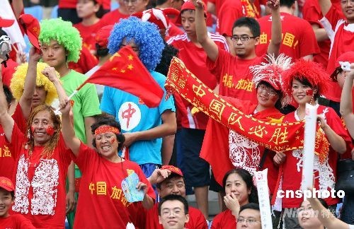 8月7日,北京奧運會沈陽足球分賽場男足預(yù)賽,中國隊1:1戰(zhàn)平新西蘭隊。圖為現(xiàn)場狂熱的中國球迷。中新社發(fā) 張宇 攝