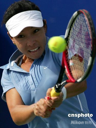 9月25日,2008年中國網(wǎng)球公開賽繼續(xù)進行,女單賽場碩果僅存的中國金花鄭潔僅用時69分鐘就以6-1,6-2橫掃日本老將杉山愛,昂首挺進女單8強。鄭潔很可能在4分之1決賽中與2號種子塞爾維亞美少女伊萬諾維奇狹路相逢。中新社發(fā) 富田 攝