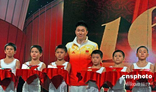 9月25日,湖南省人民政府授予李小鵬湖南功勛運(yùn)動(dòng)員稱號(hào),授予其教練陳雄功勛教練員稱號(hào)。李小鵬在當(dāng)晚舉行的《為奧運(yùn)湘軍喝彩》的頒獎(jiǎng)晚會(huì)上第一次與自己的十六枚獎(jiǎng)牌團(tuán)聚,其中的一枚獎(jiǎng)牌曾為四川地震災(zāi)區(qū)籌集賑災(zāi)款而拍賣。中新社發(fā) 張家根 攝