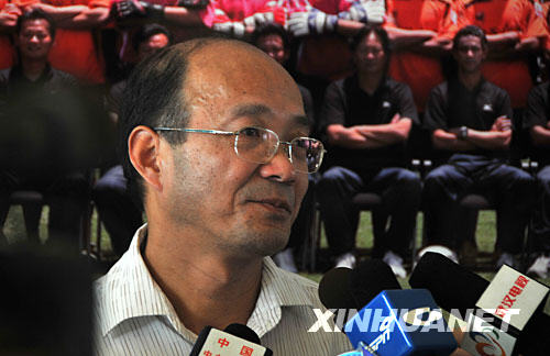 10月2日,湖北武漢職業(yè)足球俱樂部總經(jīng)理徐志強(qiáng)在新聞發(fā)布會上接受媒體采訪,就宣布正式退出中超聯(lián)賽一事對媒體進(jìn)行說明。 新華社記者萬后德攝